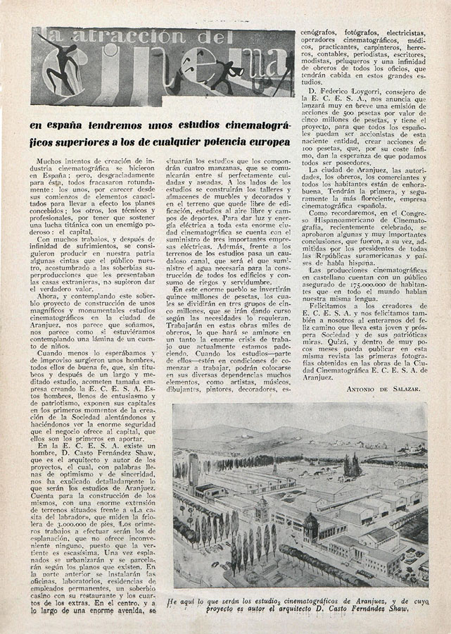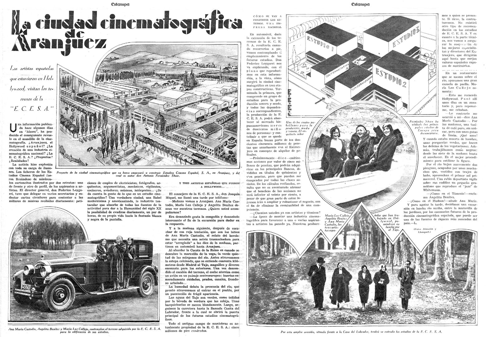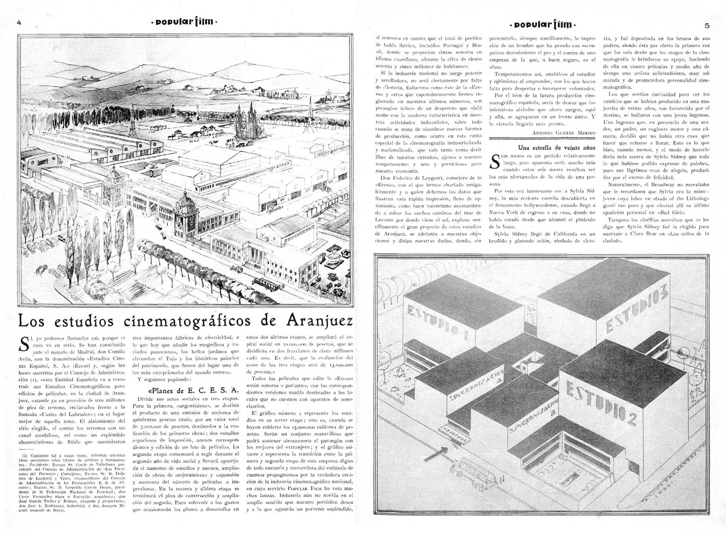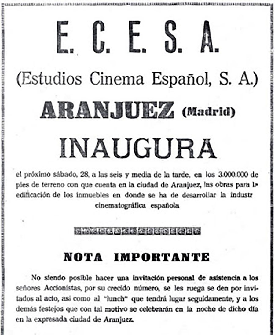 Dicha información detallaba que estos estudios se ubicarían en Aranjuez y que los promotores de esta iniciativa iba a ser la recién constituida empresa ECESA (Estudios Cinema Español S.A). Se proyectaba invertir un total de 15.000.000 de pesetas y además se haría una oferta pública de acciones con un precio de 100 pesetas cada acción.