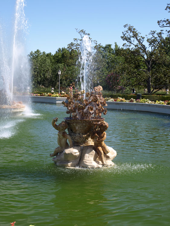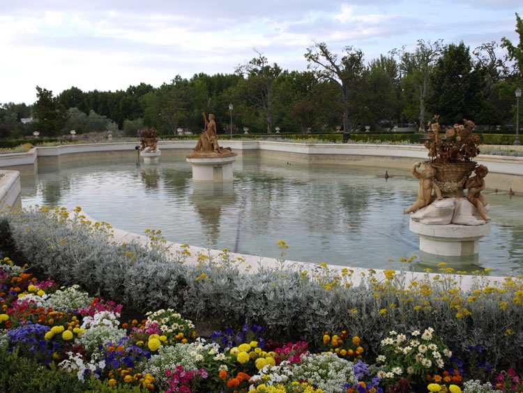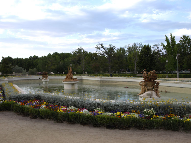 El estanque, es un rectángulo con dos semicírculos adosados a sus aristas menores, amplio, poco elevado y encintado en piedra de Colmenar. Lo rodea una superficie ajardinada de forma oval. Contiene tres grupos escultóricos el central es la representación de Ceres y en sus flancos son grupos de tres niños que sostienen canastos con flores. A la espalda del grupo principal se muestra una gran serpiente***, animal de la tierra (diosa telúrica) con la que se identifica, así como también, entre otros animales, con la grulla que como ave migratoria su llegada significa la época de siembra. Esta serpiente esconde la cola en símbolo de eternidad.