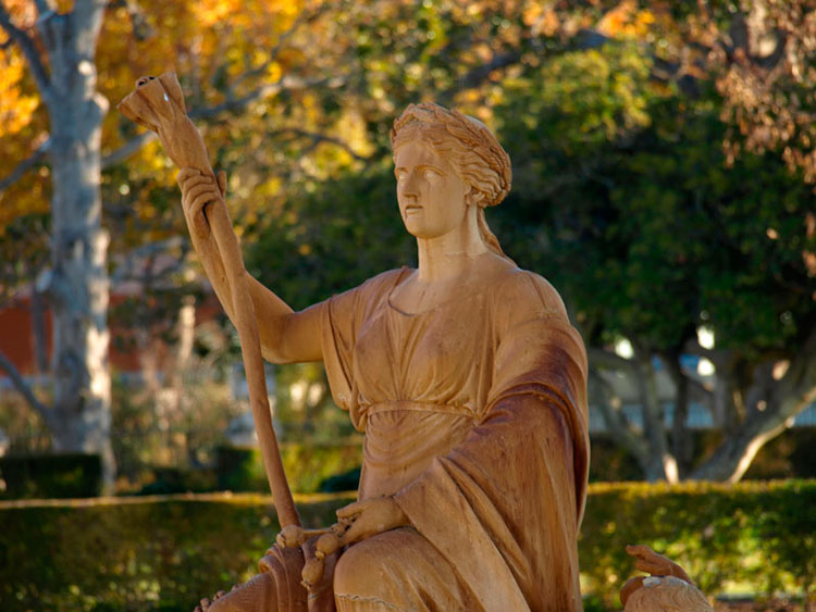 Es por tanto otra magnífica guardiana de nuestras huertas y jardines. Perteneciente al exclusivo club de las 12 divinidades olímpicas, tenía a su cargo una cuadrilla de otros tantos dioses menores que se ocupaban de los aspectos específicos de la agricultura:
