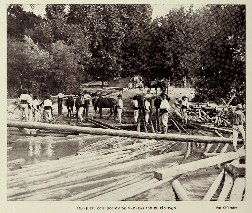 (*) Forma de transporte fluvial que podía estar constituida por miles de troncos, con dimensiones que podían superar los doce metros de longitud por pieza, llegaban a ocupar más de 30 kilómetros del río. Eran conducidas por cuadrillas de gancheros dirigidos por el maestro de río. Su transporte duraba meses.